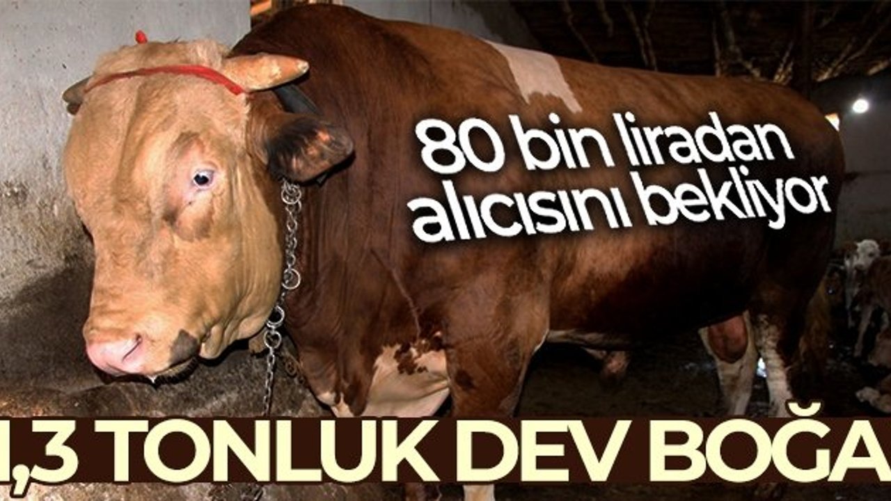 Besici Doğan Beggi'nin Sungurlu ilçesine bağlı İmirli köyündeki çiftliğinde 80 bin liradan satışa çıkardığı bir ton 300 kilogram ağırlığındaki boğa, vatandaşların ilgisini çekiyor.