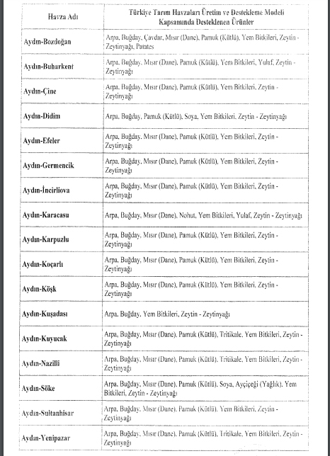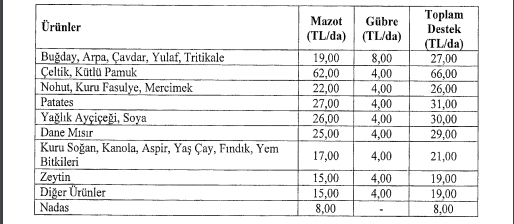 Bugün yayımlanan Resmi Gazetede desteklemeler İlçe bazında belirlenen listeye göre yapılacak.
