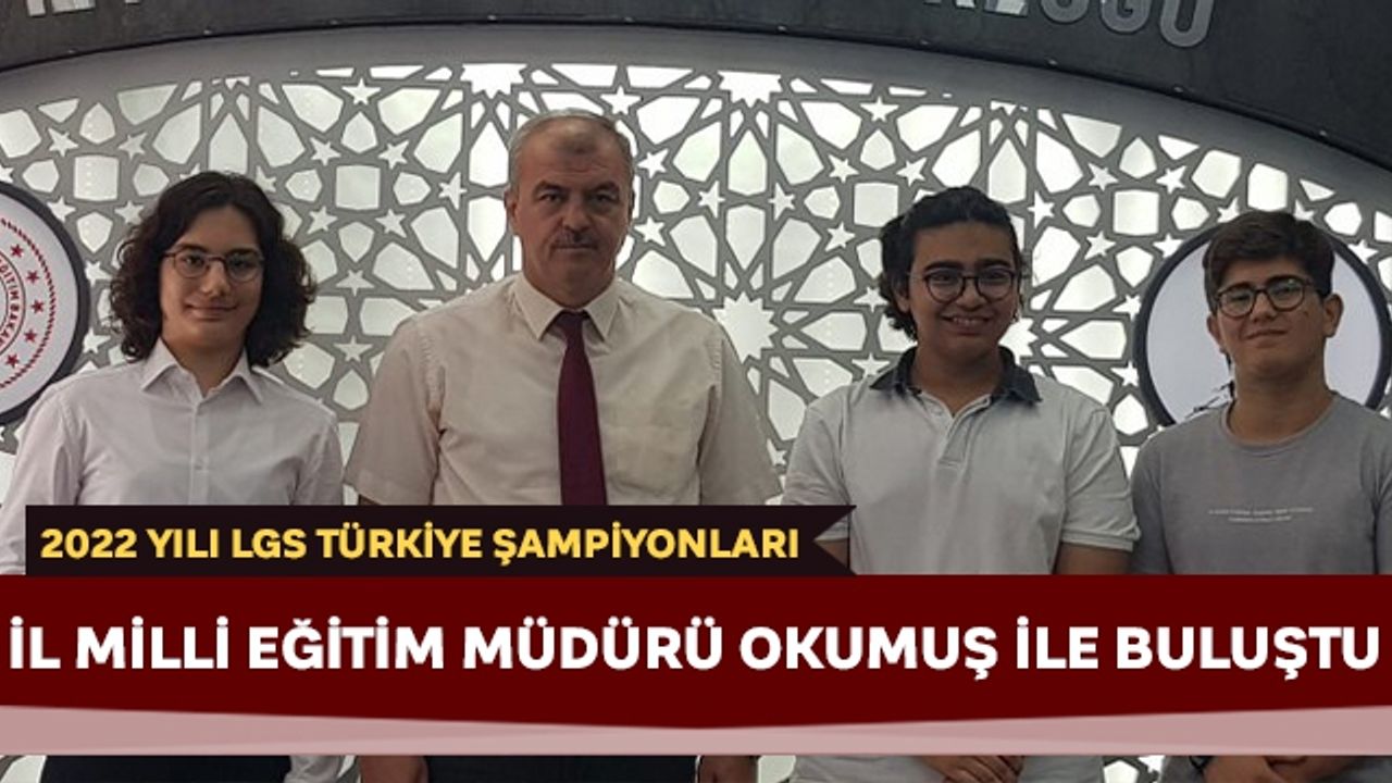 05 Haziran 2022 tarihinde Türkiye genelinde merkezi olarak 8.sınıf öğrencileri için gerçekleştirilen LGS (Liselere Geçiş Sınavı) nda; tüm soruları doğru cevaplayarak 500 tam puan alan 3 öğrencimiz İl Milli Eğitim Müdürü Seyfullah OKUMUŞ'u ziyaret ederek sevinçlerini paylaştılar.