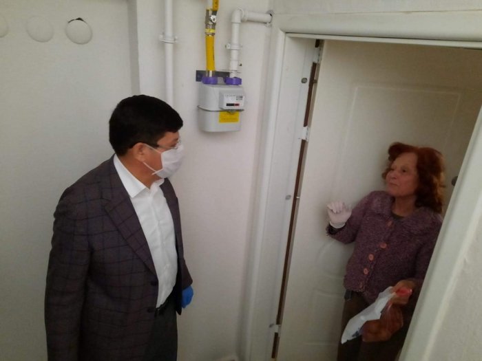 Başkan Özcan, Mesude teyzenin ihtiyaçlarını teslim ettikten sonra hava almak için balkonuna çıkan vatandaşlarla sohbet ederek hal hatır sordu.