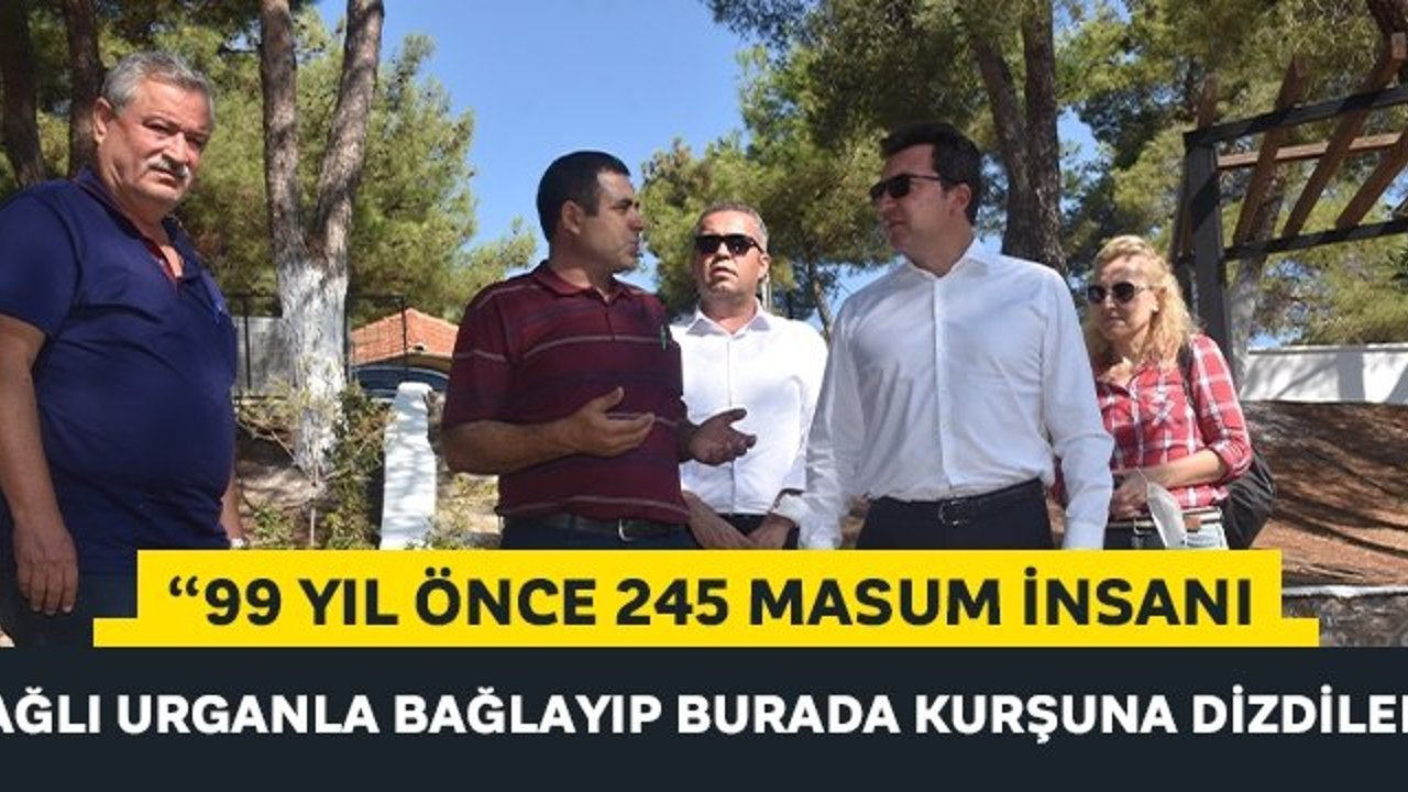 Türkiye'de Yunan mezaliminin en acımasız ve en şiddetli yaşandığı yerlerin başında gelen Aydın'da 99 yıl önce 245 masum insanın yağlı urganla bağlanıp kurşuna dizildiği Gözpınarı şehitliği o yılların izini ilk günkü gibi taşıyor. Köyde sadece 16 masum çocuğun kaldığı o zamanın Araplı köyü, katliamdan sonra sağ kalan çocukların ağlaya ağlaya gözpınarları kuruduğu için Gözpınarı olarak biliniyor. Bugün resmi ismi Gözpınarı olan ve yaklaşık 400 kişinin yaşadığı köydeki şehitliği ziyaret eden Efeler Kaymakamı duygularına hakim olamadı.