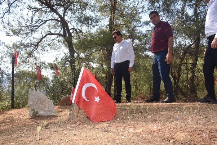 Oldukça duygulanan Kaymakam Cemal Şahin, şehitlere rahmet dileyerek 'Bu aziz vatanın her karış toprağı şehit kanları ile sulanmıştır. Özellikle genç nesle yakın tarihimiz çok iyi anlatılmalıdır. Kayıtlara göre İşgal yıllarında Aydın merkez civarında 89 köy ateşe veriliyor. Bir rivayete göre burada 44 kişi şehit ediliyor. Bir başka rivayete göre de bu köyümüzde 245 kişi şehit ediliyor, 10 kişi kayıp olarak kayıtlara geçiyor' diyerek bu bilgilerin çocuklara mutlaka aktarılması gerektiğini savundu.