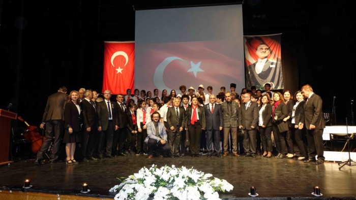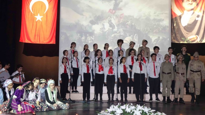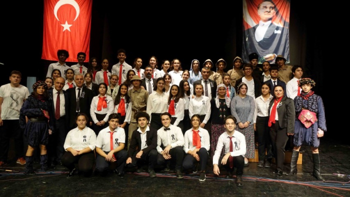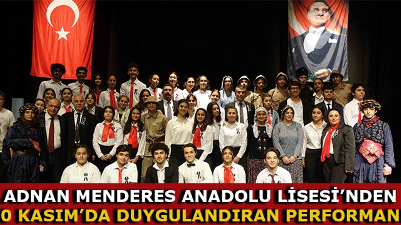 Efeler Adnan Menderes Anadolu Lisesi'nin düzenlediği 10 Kasım Atatürk'ü Anma Programı kapsamında gerçekleşen oratoryo gösterisinde öğrencilerin performansı ve Ulu Önder Mustafa Kemal Atatürk'ü canlandıran 10'uncu sınıf öğrencisi Furkan ÇATAL'ın Ata'ya benzerliği izleyenleri duygulandırdı.