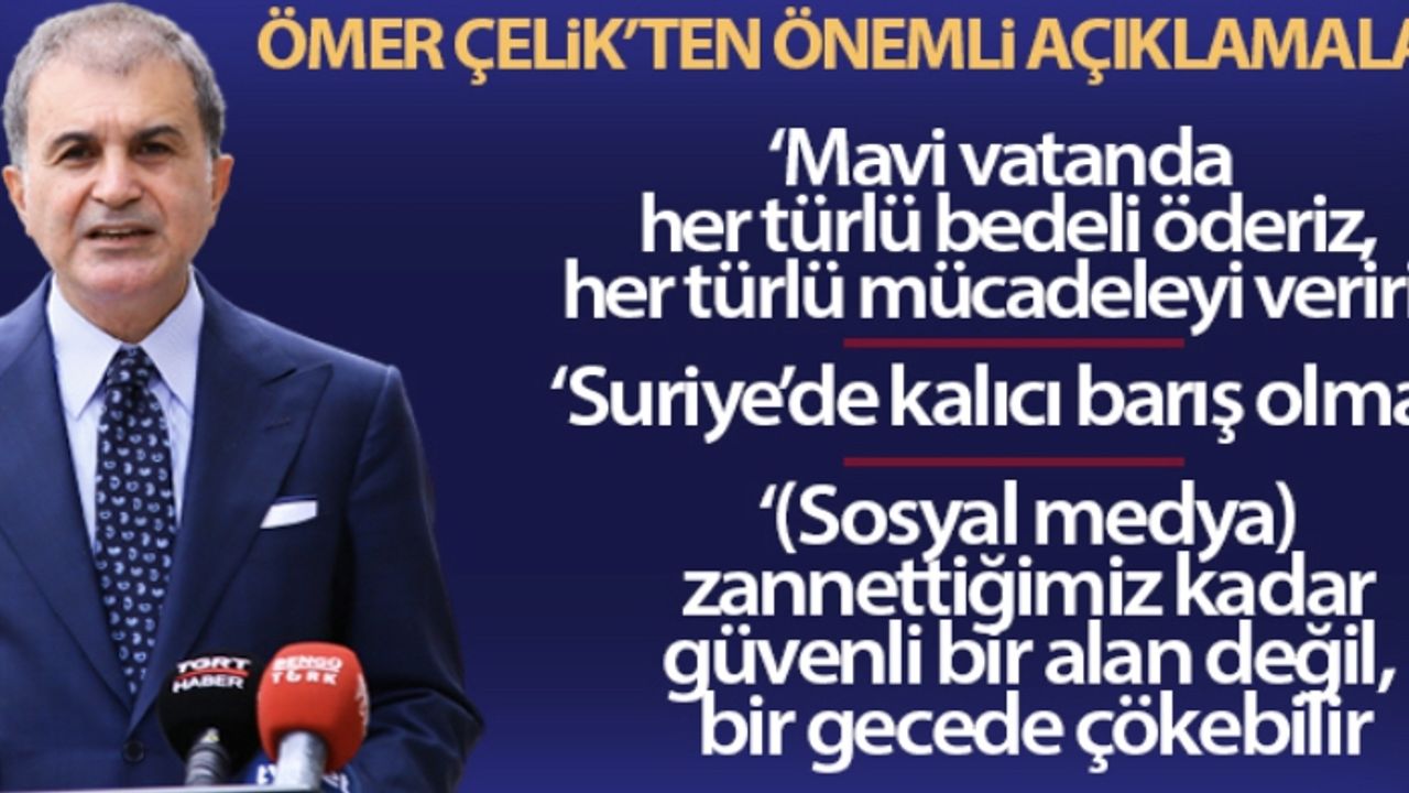 Cumhurbaşkanı Recep Tayyip Erdoğan'ın başkanlığında yapılan AK Parti MKYK ve MYK toplantıları sonrasında açıklama yapan Sözcü Ömer Çelik, gazetecilerin gündeme ilişkin sorularına cevap verdi.