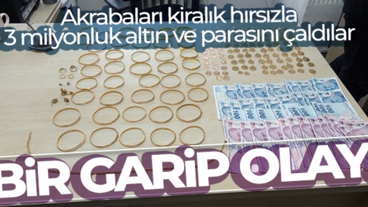 Tekirdağ'ın Malkara ilçesinde akrabaları, misafir ettikleri kadının evine kiralık hırsız gönderip 3 milyon değerindeki altın ve paraları çaldırdı. Hırsızları yakalayan polis, çalınan altın ve paraları sahibine teslim etti.