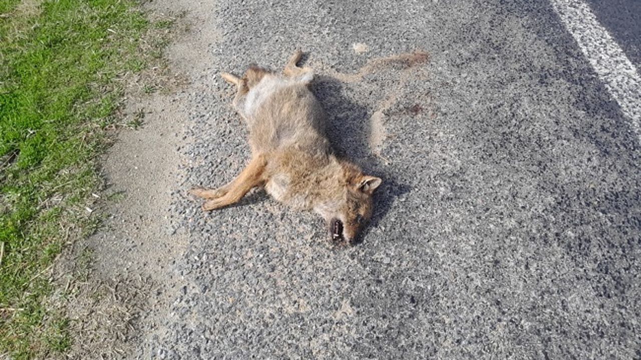 Aydın'ın Çine ilçesinde aracın çarptığı tilki yol kenarına savrularak telef oldu.