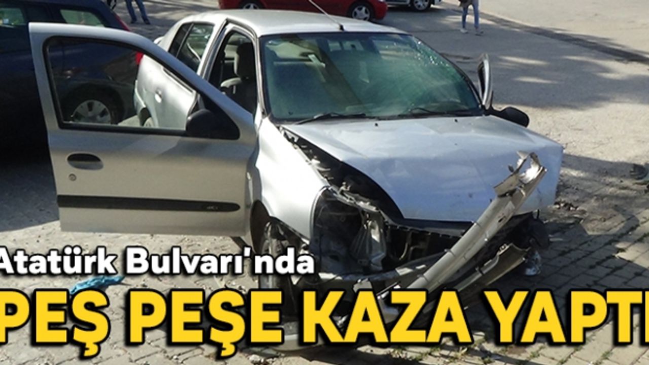 Alınan bilgiye göre, Atatürk Bulvarı seyir halindeyken Eski Otogar Kavşağından Tevfikbey Caddesine dönüş yapmak isteyen Fadıl G. idaresindeki 43 BH 315 plakalı otomobile ile İstasyon Mahallesi istikametine kent merkezine seyir halindeki Arif S. yönetimindeki 11 AAE 595 plakalı otomobil çarpıştı.
