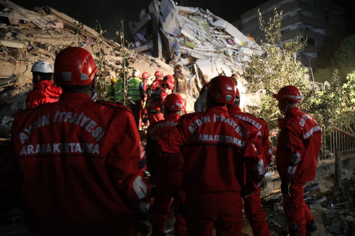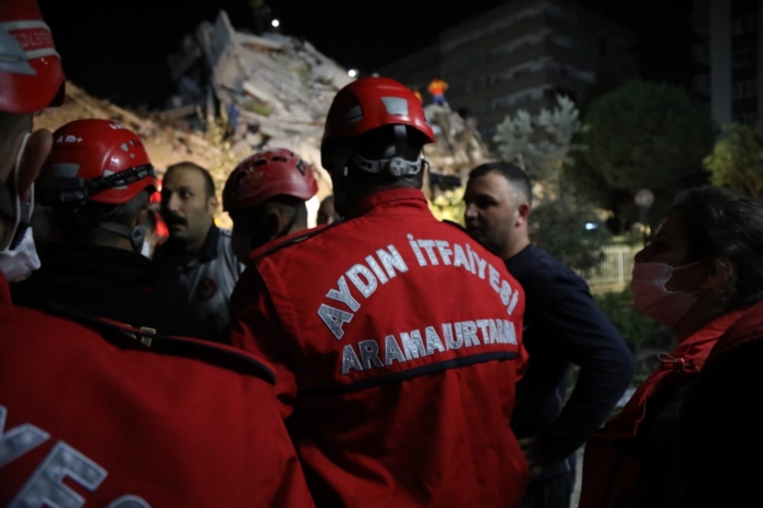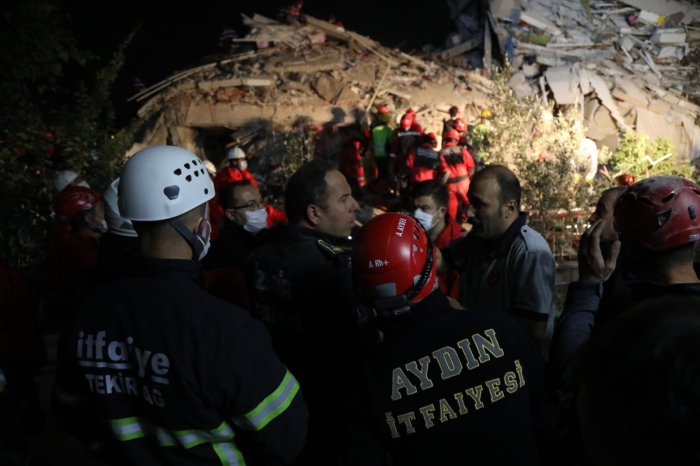Ege Denizi'nde meydana gelen 6.6 şiddetindeki deprem sonrasında, yıkılan binaların altında kalan vatandaşların kurtarılmasına destek sağlamak amacıyla 12 kişilik arama kurtarma timi hazır hale getirildi. Hazırlıklarını tamamlayan ekipler kısa süre içerisinde deprem bölgesinde ulaşarak çalışmalara katıldı. Aydın Büyükşehir Belediyesi Arama Kurtarma ekibi Bayraklı Manavkuyu bölgesinde yıkılan binalarda arama kurtarma çalışmalarına devam ediyor.