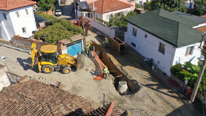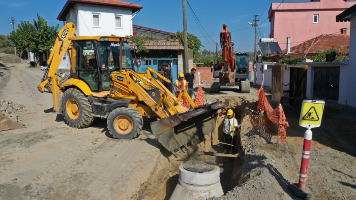 Aydın Büyükşehir Belediyesi Su ve Kanalizasyon İdaresi'nin (ASKİ) Germencik'in Mursallı Mahallesi'nde yaptığı içme suyu şebekesi ve kanalizasyon hattı altyapı çalışmaları tüm hızıyla sürüyor.