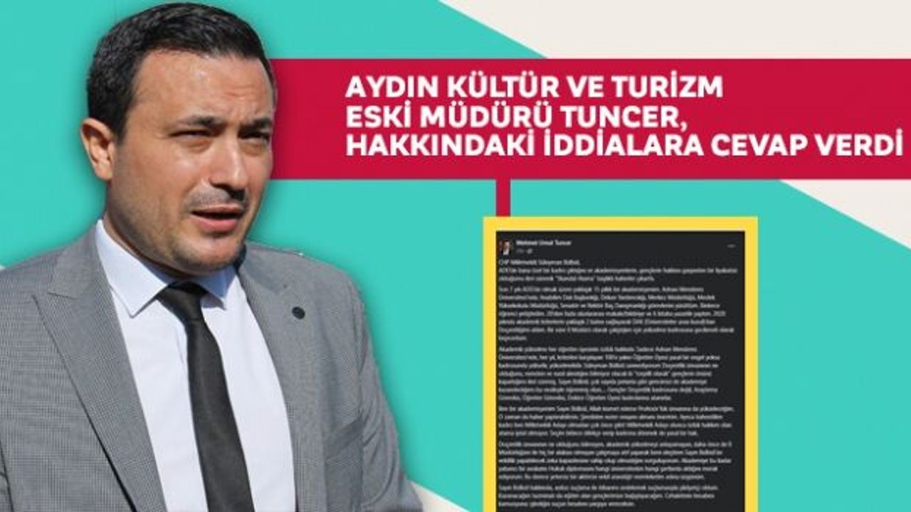 Son 7 yılı ADÜ'de olmak üzere yaklaşık 15 yıllık bir akademisyen olduğunu belirten Tuncer, yaptığı açıklamada 'Adnan Menderes Üniversitesi'nde, Anabilim Dalı Başkanlığı, Dekan Yardımcılığı, Merkez Müdürlüğü, Meslek Yüksekokulu Müdürlüğü, Senatör ve Rektör Baş Danışmanlığı görevlerini yürüttüm. Binlerce öğrenci yetiştirdim. 20'den fazla uluslararası makale- bildiriye ve 6 kitaba yazarlık yaptım. 2020 yılında akademik kriterlerin yaklaşık 2 katını sağlayarak Üniversiteler Arası Kurul'dan (ÜAK) Doçentliğimi aldım. Bir süre İl Müdürü olarak çalıştığım için yükselme kadrosuna gecikmeli olarak başvurdum. Akademik yükselme her öğretim üyesinin özlük hakkıdır. Sadece Adnan Menderes Üniversitesi'nde, her yıl, kriterleri karşılayan 100'e yakın Öğretim Üyesi yasal bir engel yoksa kadrosunda yükselir, yükselmelidir. Süleyman Bülbül zannediyorum Doçentlik unvanının ne olduğunu, nereden ve nasıl alındığını bilmiyor olacak ki 'torpilli olarak' gençlerin önünü kapattığımı ileri sürmüş. Sayın Bülbül, çok sayıda pırlanta gibi gencimizi de akademiye kazandırdığımı bu vesileyle öğrenmiş olun. Gençler Doçentlik kadrosuna değil, Araştırma Görevlisi, Öğretim Görevlisi, Doktor Öğretim Üyesi kadrolarına atanırlar. Ben bir akademisyenim Sayın Bülbül, Allah kısmet ederse Profesörlük unvanına da yükseleceğim. O zaman da haber yaptırabilirsin. Şimdiden noter onayını almanı öneririm. Ayrıca bahsedilen kadro, ben milletvekili adayı olmadan çok önce çıktı. Milletvekili adayı olunca özlük hakkım olan atama iptal olmuyor. Seçim bitince dilekçe verip, kadrona dönmek de yasal bir hak. Doçentlik unvanının ne olduğunu bilmeyen, akademik yükselmeyi anlayamayan, daha önce de İl Müdürlüğüm ile hiç bir alakası olmayan çalışmaya atıf yaparak beni eleştiren Sayın Bülbül'ün vekillik yapabilecek zeka kapasitesine sahip olup olmadığını sorguluyorum. Akademiye bu kadar yabancı bir avukatın, hukuk diplomasını hangi üniversiteden hangi şartlarda aldığını da merak ediyorum. Bu derece yetersiz bir aktörün vekil atandığı, memleketim adına üzgünüm. Sayın Bülbül hakkında, asılsız suçlama ile itibarımı zedelemek suçlamasıyla şikayetçi oldum. Kazanacağım tazminatı da eğitim alan gençlerimize bağışlayacağım. Cehaletinin hesabını kamuoyuna, işlediğin suçun hesabını yargıya vereceksin' ifadelerine yer verdi.