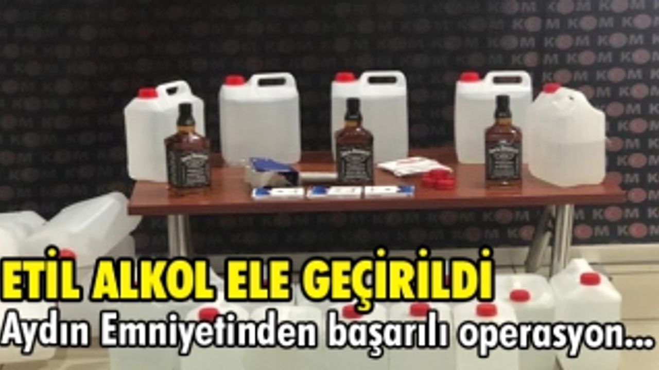 Aydın Emniyet Müdürlüğü Kaçakçılık ve Organize Suçlarla Mücadele Şube Müdürlüğü ekiplerinin kaçak alkol imalatı ve satışına yönelik olarak yaptığı operasyonda 2 bin 697 litre etil alkol, 9 adet 1'er litrelik viski, bin 52 adet etil alkol etiketi, 295 adet plastik bidon kapağı ve 39 adet 5' er litrelik plastik bidon ele geçirildi.