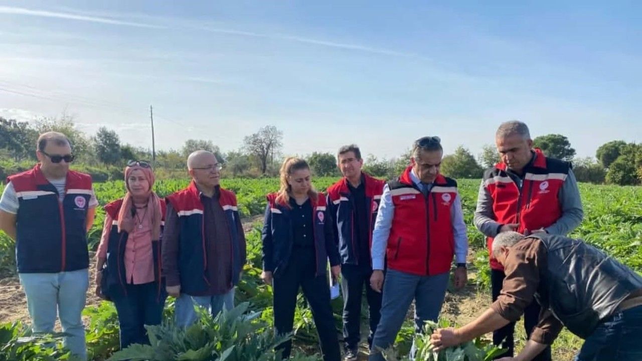 Bu kapsamda, Aydın İl Tarım ve Orman Müdürü Ayhan Temiz de Efeler ilçesi Gölhisar Mahallesi’ndeki üretici Mehmet Karagöz’e ait 5 dekarlık enginar tarlasında incelemelerde bulundu. İncelemeler sırasında enginar üretimi, hastalık ve zararlılarla mücadele, verim durumu ve pazarlama süreçlerine ilişkin üretici ile karşılıklı değerlendirmeler yapıldı. İl Müdürü Temiz, Aydın Enginarı’nın ülke çapında elde ettiği başarıya dikkat çekerek üretimin daha da artırılması için teknik çalışmaların sürdüğünü belirtti.