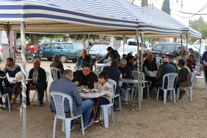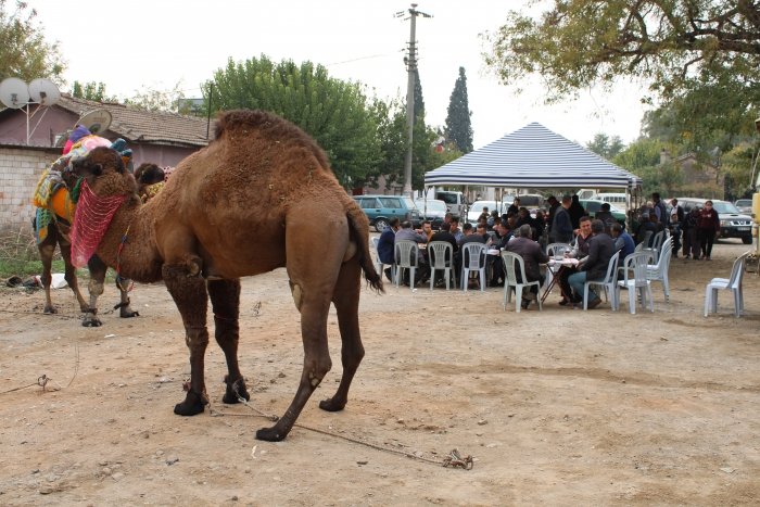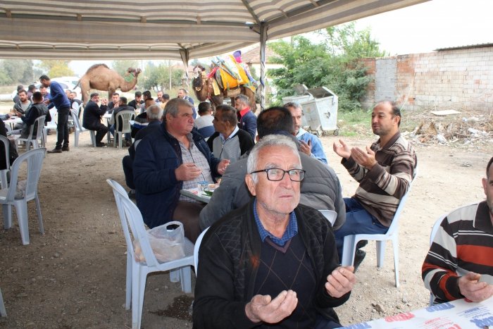 Develerin sağlığı için duaların edilmesinin ardından, hayırda bir araya gelen vatandaşlar ile birlikte kurak geçen sezonun son bulması ve afetsiz yağmurların olması için yağmur duası yapıldı.