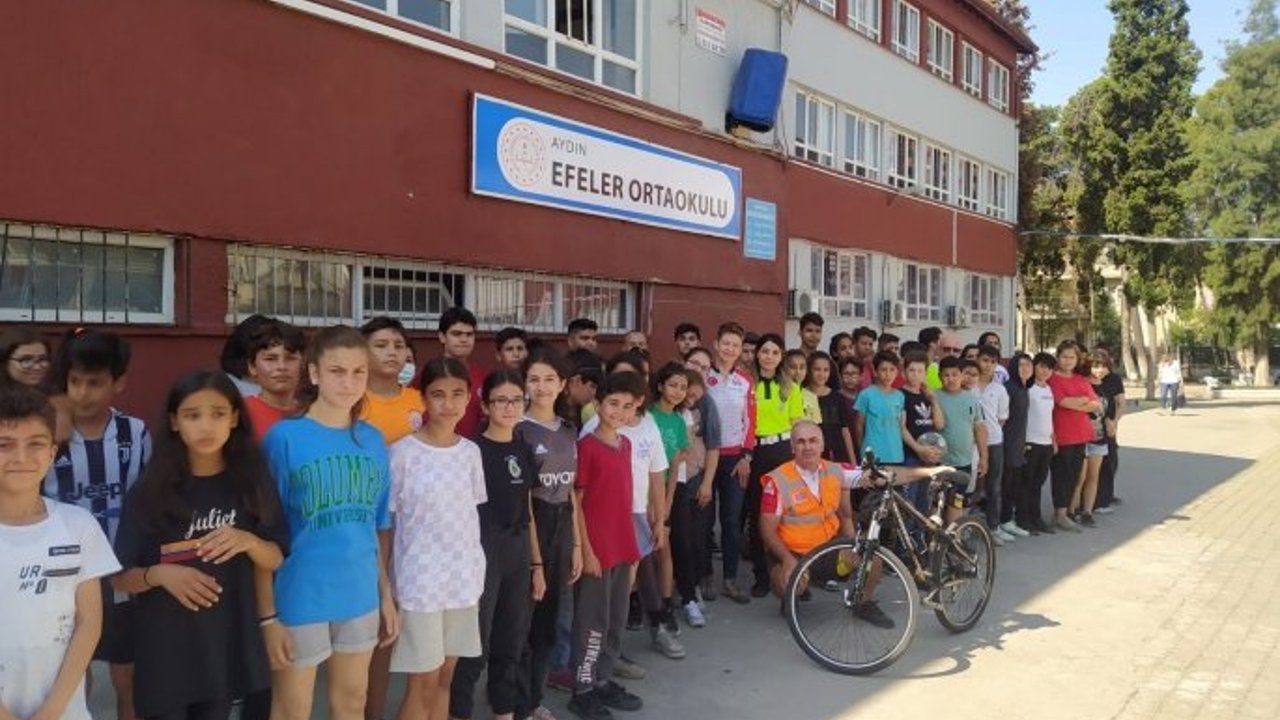 Aydın'da ortaokulu öğrencilerine, güvenli bisiklet kullanımı eğitimi verildi.