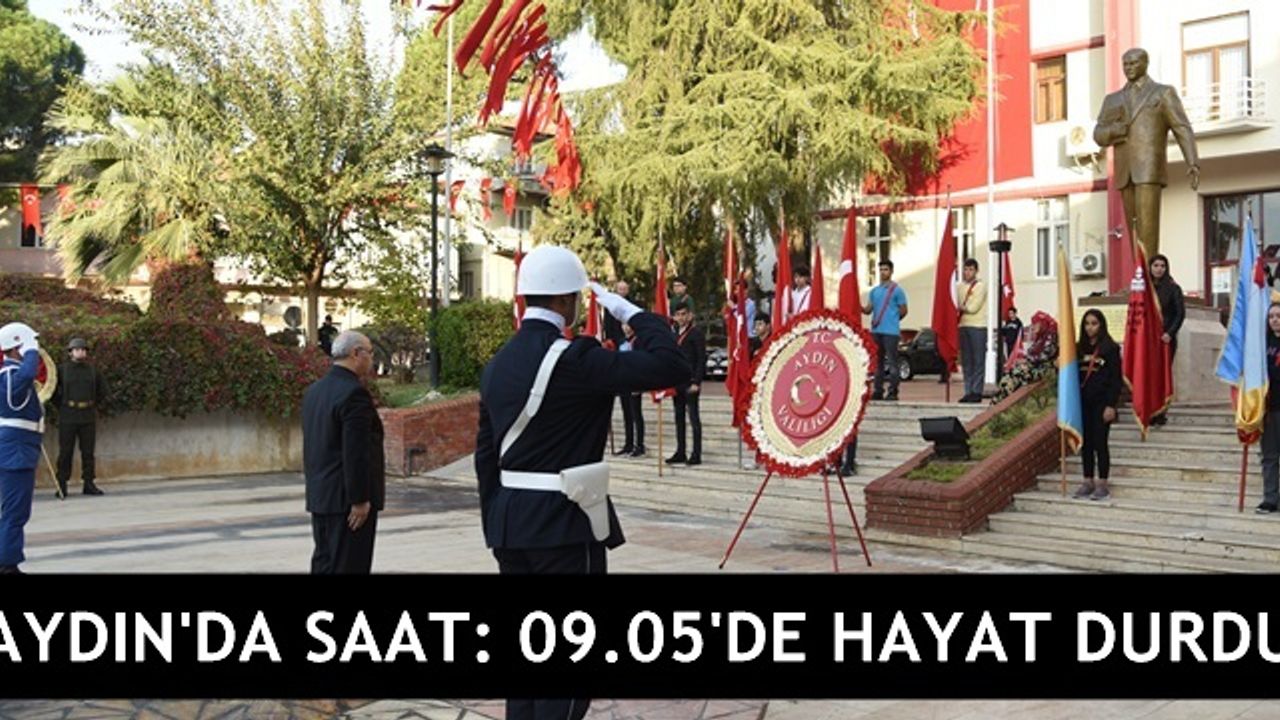 Saat 09.05'de ise, Aydın'da sirenler çalmaya başladı. Sirenlerin çalmasıyla birlikte 2 dakikalık saygı duruşunda bulunuldu. Valilik önündeki resmi programın ardından çeşitli siyasi parti ve sivil toplum örgütleri de Atatürk anıtına çelenk sundu.