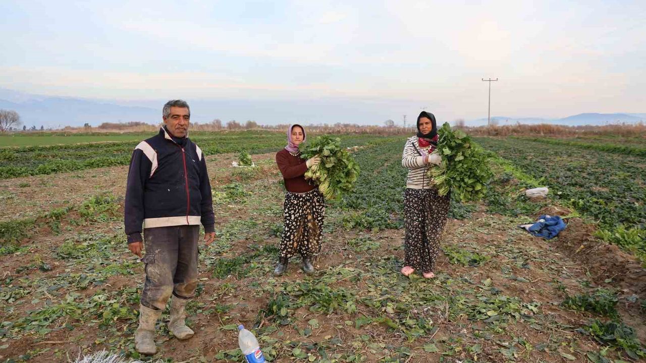 Aydın'da geçtiğimiz hafta etkili olan kırağı ve don nedeniyle sebze üreticileri verim kaybı yaşarken, mahsul tarlada kalmasın diye geç hasada devam ediliyor.