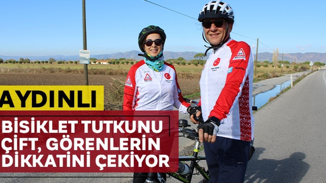Aydınlı bisiklet tutkunu çift, görenlerin dikkatini çekiyor