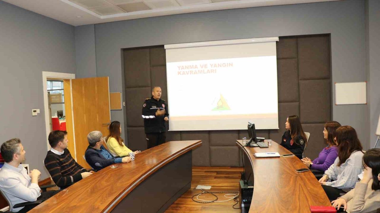 Aydın Ticaret Odası (AYTO) çalışanlarına yönelik 'Temel Yangın Eğitimi' düzenlendi. AYTO Toplantı Salonu'nda gerçekleştirilen eğitimde, Aydın Büyükşehir Belediyesi İtfaiye Dairesi Başkanlığı'nda görevli İtfaiye Amiri Ahmet Tanrıverdi tarafından personele bilgilendirme yapıldı. Eğitim kapsamında muhtemel yangınlara karşı alınacak önlemler, yangın anında yapılması gerekenler ve yangına doğru müdahale yöntemleri detaylı şekilde anlatıldı. Ayrıca yangın söndürme cihazlarının kullanımı hakkında da uygulamalı bilgiler paylaşılırken, çalışanlardan gelen sorular yanıtlandı. AYTO Genel Sekreteri İlknur Kahraman ise kurum içi eğitim faaliyetlerine önem verdiklerini belirterek, 'Temel Yangın Eğitimi ile personelimiz, muhtemel yangınlar, yangın anında yapılması gerekenler ve yangına doğru müdahale konularında bilinçlendi. Personelimizin herhangi bir acil durumda doğru adımları atabilmesini hedefliyoruz' dedi. Kahraman, farklı konularda eğitim çalışmalarının devam edeceğini de sözlerine ekledi.