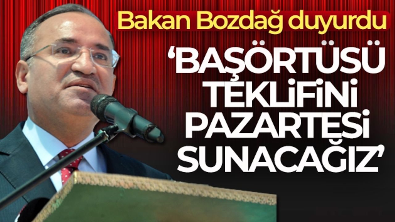 Adalet Bakanı Bekir Bozdağ, başörtüsü teklifine ilişkin, 'Biz çalışmalarımızı pazartesiye kadar netleştirip Cumhurbaşkanımıza arz etmeyi planlıyoruz' dedi.