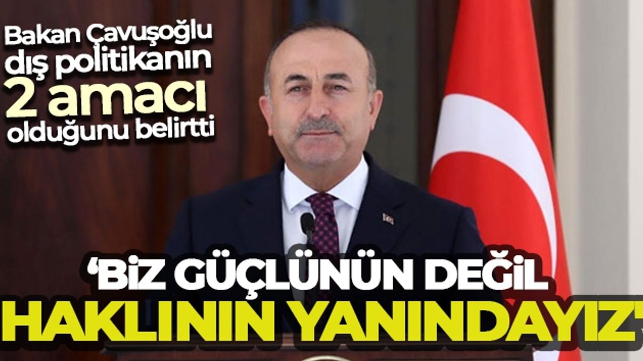 Dışişleri Bakanı Mevlüt Çavuşoğlu, dış politikanın 2 amacı olduğunu belirterek, 'Birincisi ülkenin güvenliğini artırmak, ikincisi refahını artırmak. Suriye'de, Irak'ta, Libya'da etkili olmamız güvenliğimiz için, huzurumuz için. Doğu Akdeniz'de, Kıbrıs'ta ve Ege'de Yunan ve Rum'un sinsi planlarına karşı duruyorsak, gelecek nesillerimiz için. Biz güçlünün değil haklının yanındayız' dedi.