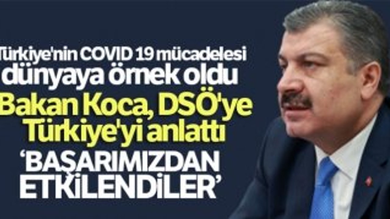 Hürriyet gazetesinden Ahmet Hakan'ın sorularını yanıtlayan Sağlık Bakanı Fahrettin Koca, Dünya Sağlık Örgütü Başkanı Dr. Tedros Ghebreyesus başkanlığında iki saate yakın süren bir toplantıda 12 dakikalık bir sunum yaptığını belirterek, 'Toplantıdan sonra ben sosyal medyada Türkçe, 'Başarılarımızı anlattık, Türkiye'nin sunumu ilgi gördü' diye yazdım. Dünya Sağlık Örgütü Başkanı, bu mesajı takipçileriyle paylaşarak söylediğimize onay vermiş oldu. Bu kadar vakaya rağmen hastane yükümüzün bu kadar az olmasından etkilendiler. Zatürreye dönüşme oranının yüzde 64'ten yüzde 12'ye düşmesinden etkilendiler. Yoğun bakıma geçiş sayısının ve yoğun bakımda kalış süresinin azalmasından da etkilendiler. Mücadeledeki tedavi başarımızı anlattık. Erken dönemde bazı ilaçları stoklamamızı, bazı ilaçları Çin'den getirmemizi, bir tedavi protokolüyle tüm Türkiye'de aynı tedaviyi uygulamaya soktuğumuzu bu tedavi protokolünü sahadaki gözlemlerimize dayalı olarak yenilememizi anlattık' dedi.