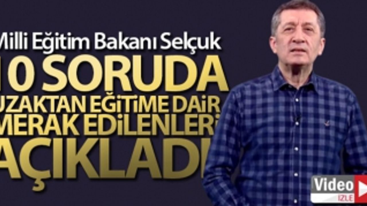Milli Eğitim Bakanı Ziya Selçuk, bugün başlayan uzaktan eğitimle ilgili 10 soruda merak edilenleri cevapladı. Selçuk, 'Uzaktan eğitimde herhangi bir sınav ve notlama olmayacak. Bu süreç çocuklarımızın çalış demeden çalışacakları, ödev yap demeden kağıda kaleme sarılacakları, oku demeden okuyacakları, öz sorumluluklarıyla tanışacakları bir süreç olacak' dedi.