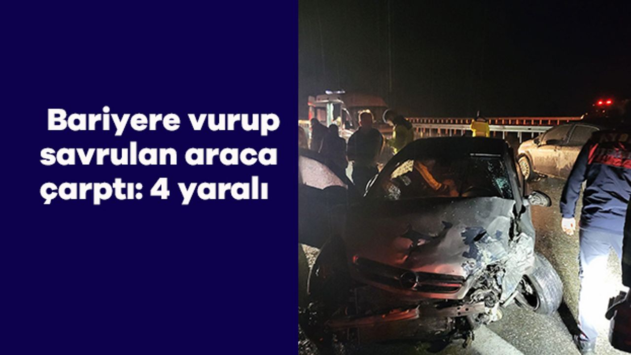 Aydın'ın Kuyucak ilçesinde bariyere vurup savrulan araca bir başka aracın çarpması sonucu meydana gelen trafik kazasında 4 kişi yaralandı.
