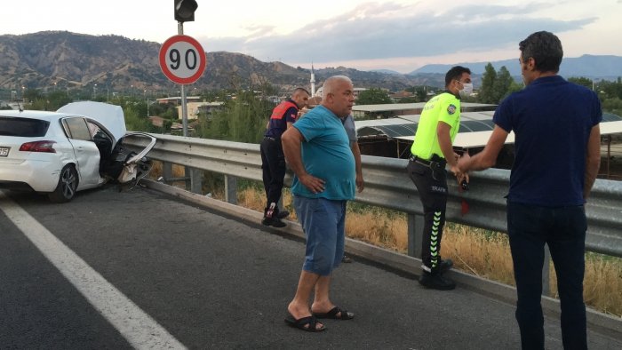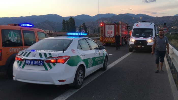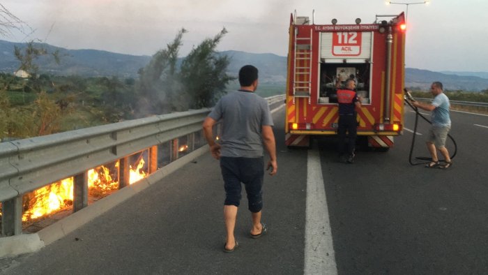 Kaza, Aydın-İzmir otobanı Umurlu çıkışı Pınardere mevkisinde saat 20.30 sıralarında meydana geldi. Edinilen bilgiye göre, 09 ABD 115 plakalı Peugeot otomobil sürücüsü H.Ö., henüz bilinmeyen bir nedenle direksiyon hakimiyetini kaybederek bariyerlere çarptı. Çarpmanın etkisi ile metrelerce sürüklenen otomobilden çıkan kıvılcımlar yol kenarındaki kuru otları tutuşturdu. Kazayı görenler durumu 112 Acil Çağrı Merkezi'ne bildirdi. İhbar üzerine bölgeye itfaiye, sağlık, polis ve jandarma ekipleri sevk edildi. Kısa sürede olay yerine gelen Aydın Büyükşehir Belediyesi İtfaiye Daire Başkanlığı ekipleri otomobil sürücüsü H.Ö.'yü sıkıştığı yerden kurtardı. Sağlık ekipleri tarafından ilk müdahalesi yapılan sürücü ambulansla Aydın Devlet Hastanesi'ne kaldırıldı. Yol kenarındaki ot yangını ise itfaiye ekipleri tarafından söndürüldü.