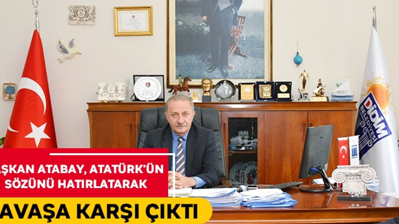 Rusya ve Ukrayna arasında yaşanan gerginliğin ardından bir mesaj yayımlayan Didim Belediye Başkanı Ahmet Deniz Atabay, Mustafa Kemal Atatürk'ün 'Yurtta sulh, cihanda sulh' sözlerini hatırlatarak, 'savaşa hayır' dedi.