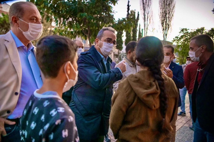 Depremden etkilenen bölgelerden birisi olan Kuşadası'nda, vatandaşlarla tek tek konuşarak yanlarında olduklarını belirten Didim Belediye Başkanı A.Deniz Atabay, evlerine giremeyen, geceyi sokakta, afet toplanma alanında ve parklarda geçiren vatandaşlara geçmiş olsun dileklerinde bulundu.