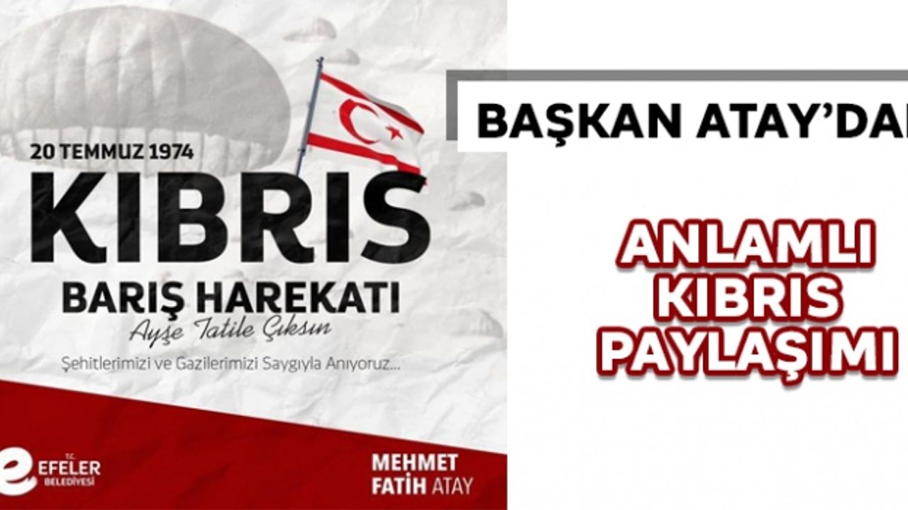 Efeler Belediye Başkanı Atay, Türk Silahlı Kuvvetleri'nin 20 Temmuz 1974'te gerçekleştirdiği ve Kuzey Kıbrıs Türk Cumhuriyeti'nin (K.K.T.C.) kuruluş yolunu açan Kıbrıs Barış Harekatı'nın 48'inci yıl dönümünü resmi sosyal medya hesaplarından andı.