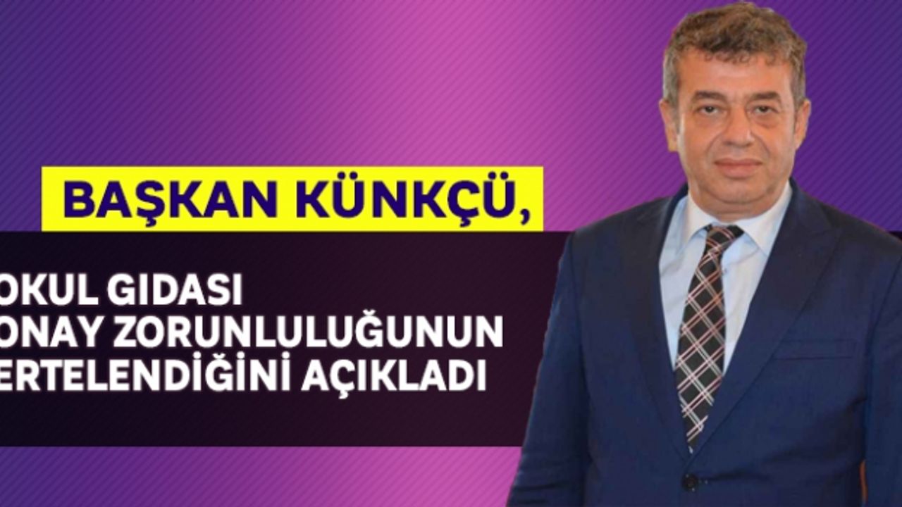 Aydın Esnaf ve Sanatkarlar Odaları Birliği Başkanı Muhammet Ali Künkcü, Resmi Gazete'de yayımlanan kararla, okullarda satılan gıdalar için Bakanlıktan 'Okul Gıdası' onayı alınması zorunluluğunun, 11 Eylül 2023 tarihine ertelendiğini bildirdi.