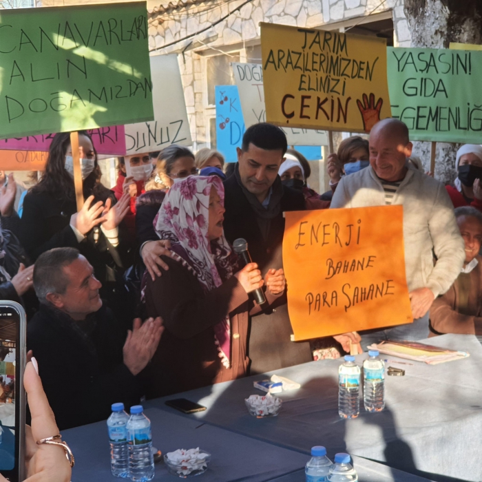 Toplantıya katılarak Kirazlı Mahallesi sakinlerini yalnız bırakmayan Kuşadası Belediye Başkanı Ömer Günel, çevrenin ve doğanın korunmasının önemine dikkat çekti. Pandemi döneminde sağlıklı gıdaya ulaşımın ve organik tarımın öneminin çok daha iyi anlaşıldığını ifade eden Başkan Ömer Günel 'Kirazlı mahallemiz kentimizin en önemli tarım alanlarının başında gelmektedir. Köylülerimize ve Kuşadası halkına rağmen kimsenin tarım arazilerimize el sürmesine izin vermeyeceğiz. Enerji kadar sağlıklı gıdaya da ihtiyacımız var. Görev sürem bitse de sade bir vatandaş olarak her zaman yanınızda olmayı sürdüreceğim. Bir yanda tarım arazilerini yok etmeye çalışan irade, bir yandan tarımın önünü açmaya çalışan irade var. Hadi bakalım hodri meydan' diye konuştu.