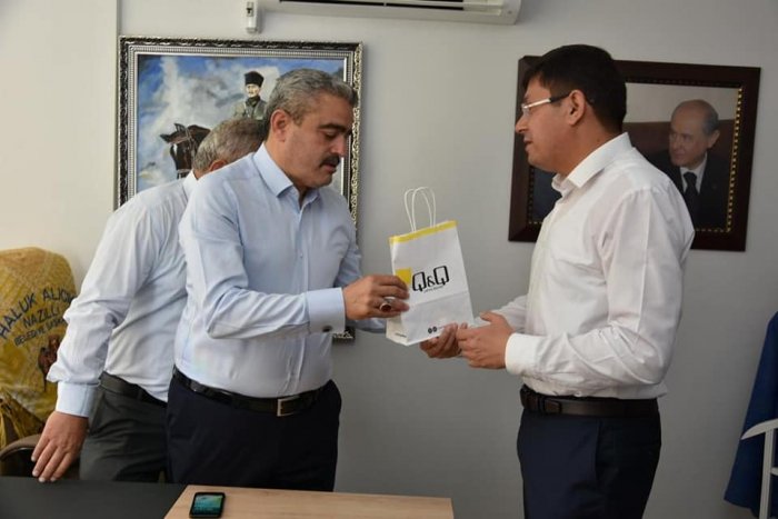 Aydın'ın Nazilli ilçesinin Belediye Başkanı Kürşat Engin Özcan, önceki dönem belediye başkanı MHP aydın İl Başkanı Haluk Alıcık'a doğum günü sürprizi yaptı. Alıcık'ı çalışma ofisinde ziyaret eden Özcan, Alıcık'a köstekli saat hediye etti.