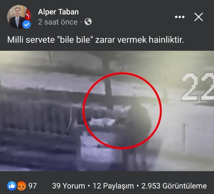 Videoyu sosyal medya hesabından paylaşan İnegöl Belediye Başkanı Alper Taban, 'Milli servete bile bile zarar vermek hainliktir' diyerek tepki gösterdi.