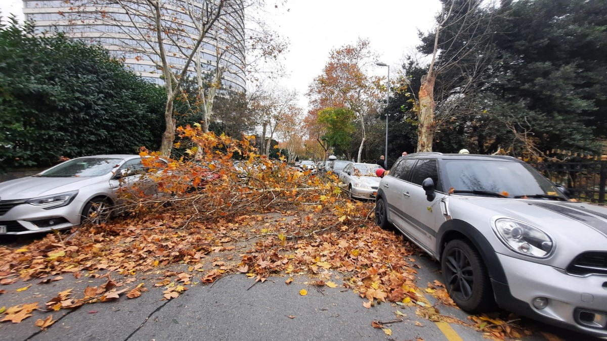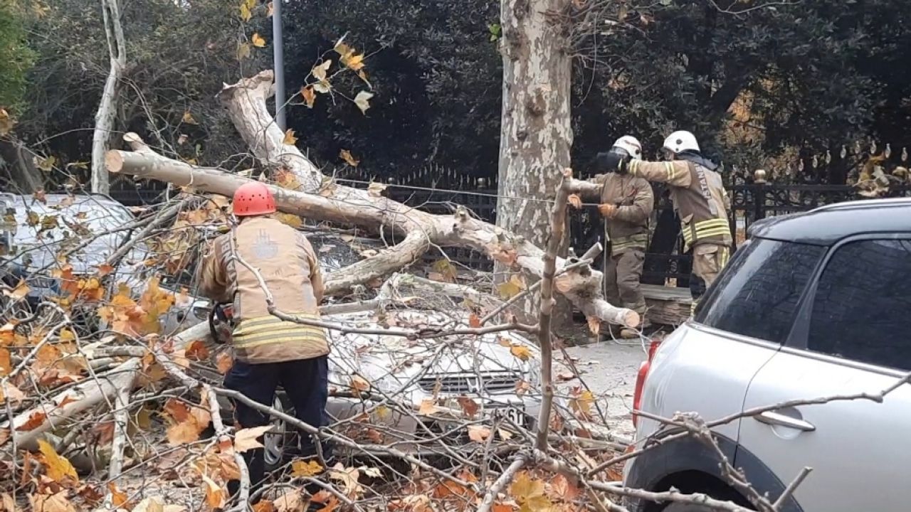 Meteorolojinin 'Sarı Kod' ile uyardığı İstanbul'da şiddetli rüzgar etkili olmaya başladı. Beşiktaş Cihannüma Mahallesinde yol kenarındaki bir ağaç rüzgarın etkisiyle park halindeki bir otomobilin üzerine devrildi.