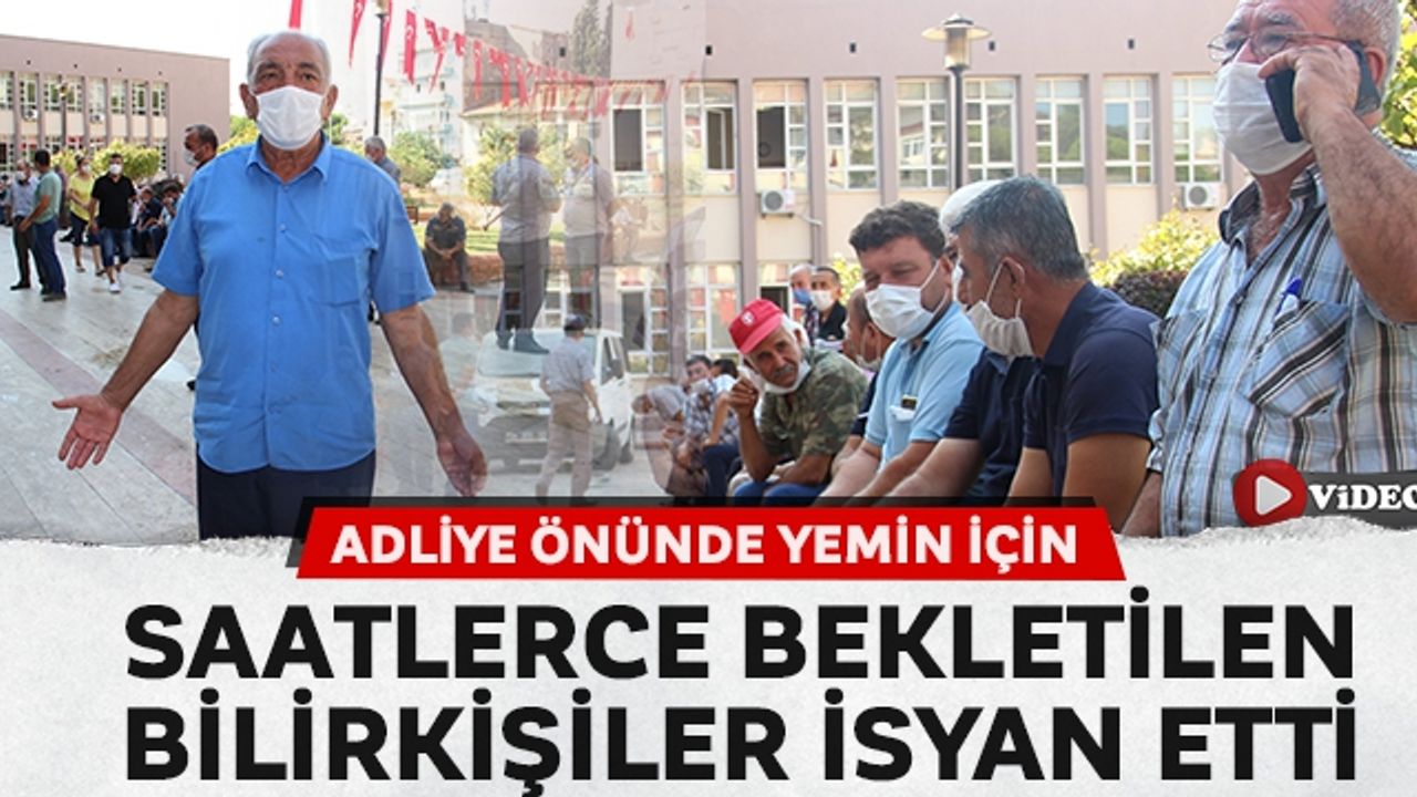 Sabah 09.00'da yemin etmek üzere Aydın Adliyesi'ne çağrıldıkları için işi gücü bırakıp geldiklerini belirten köylerin bilirkişileri 'Biz köylüler kanuna saygımızdan dolayı işi gücü bırakıp geldik. Ancak kanunu uygulayanların bize saygısı olmadığı için saatlerdir adliye önünde bekliyoruz' diyerek yaşadıkları duruma tepki gösterdiler.