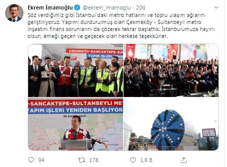 İstanbul Büyükşehir Belediyesi yapımı durdurulmuş olan 'Çekmeköy - Sultanbeyli Metro Hattı' inşaatı tekrar başlattı.