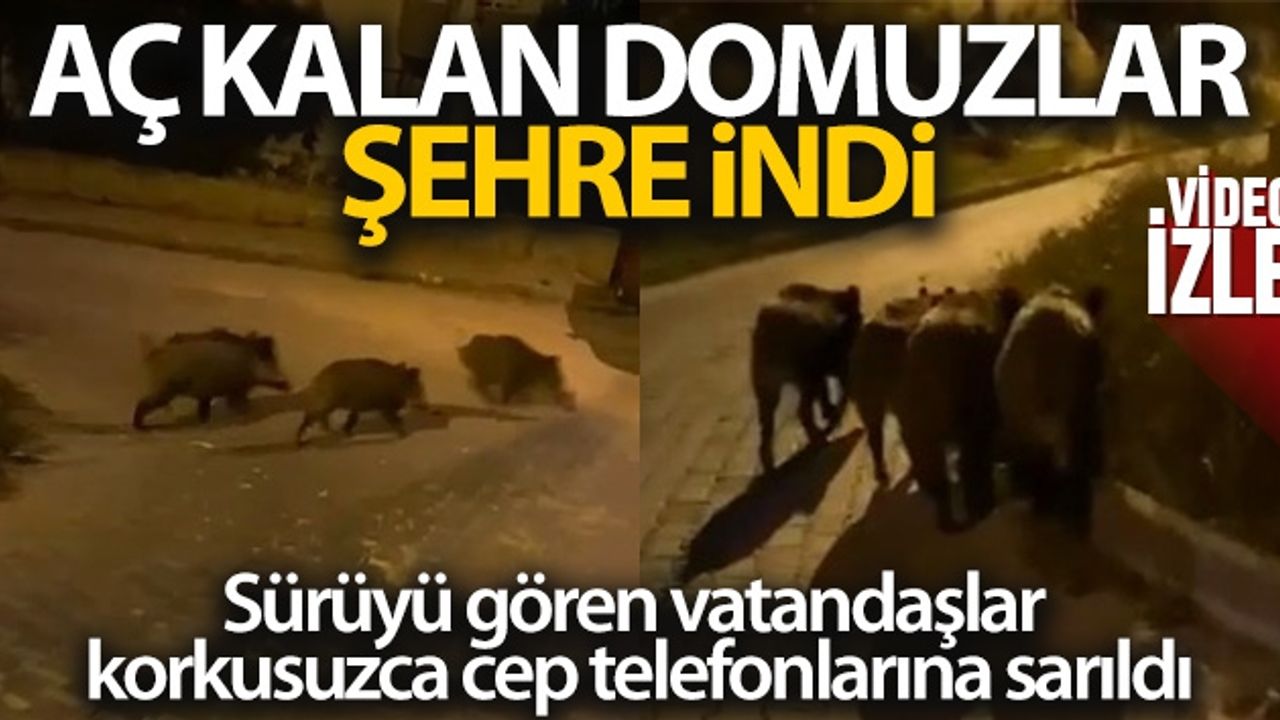 Domuz sürüsü, Mudanya ilçesi Halitpaşa Mahallesi'nde görüldü. Aç kalan ve yemek bulmakta zorluk çeken domuz sürüsü, çöp konteynerlerinden yiyecek bulmak için kent merkezine indi. Yavruların da olduğu domuzları gören vatandaşlar cep telefonu kamerasına sarıldı. Korkusuzca sürünün yakınına kadar giden vatandaşlar, izleyenlerin yüreğini ağzına getirdi.