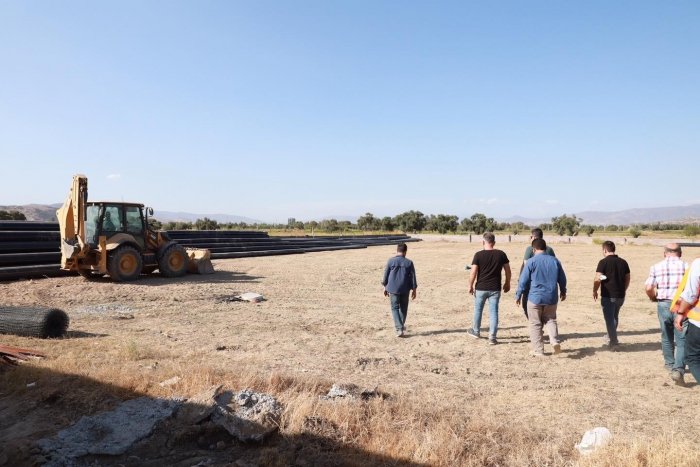 Devlet Su İşleri 21. Bölge Müdürü Emrah Köleoğlu, Bölge Müdür Yardımcısı İnan Gündüz ve ilgili şube müdürlerinden oluşan heyet, Çine Ovası'nı modern borulu sistem ile sulama imkanı sağlayacak olan Aydın Çine Sulaması 2. Kısım inşaatının koordine edildiği şantiye sahasını ziyaret ederek, yüklenici firma yetkililerinden bilgi aldı. Geçtiğimiz günlerde sözleşmesi imzalanan ve şantiye kurulum çalışmalarına başlanan Çine Sulaması 2. Kısım çalışmalarında ilk borular şantiye sahasına indi. Projenin nihayete ermesiyle, Çine Ovası'nda bulunan 66 bin 800 dekar zirai arazinin modern borulu sistem ile sulanması sağlanacak