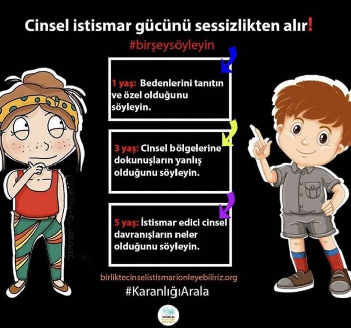 #birşeysöyleyin #karanlığıarala #cinselistismarasessizkalma etiketlerini sosyal medyada paylaşabilir.