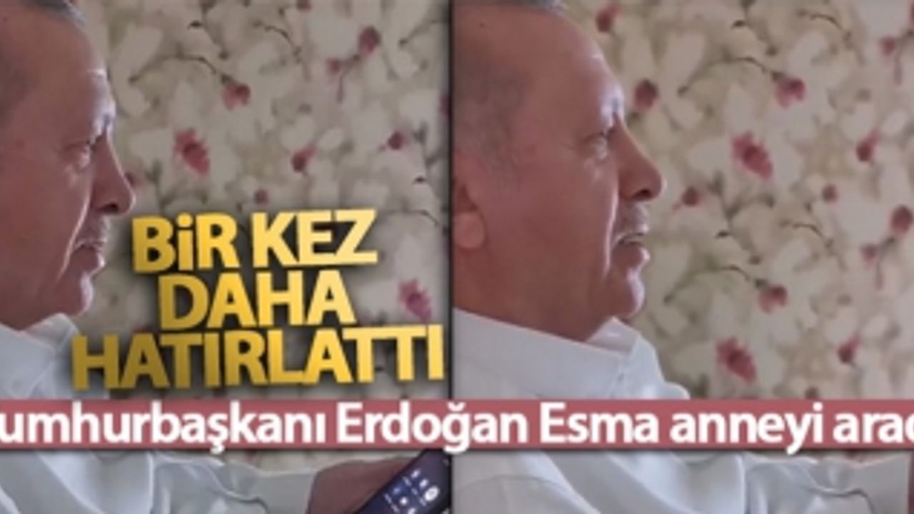 Cumhurbaşkanı Recep Tayyip Erdoğan, Miraç Kandili'ni mesajla tebrik eden Esma Çökmen'le telefonla görüştü. Erdoğan, Çökmen'e evden çıkmaması gerektiğini hatırlatarak 'Esma anne gibi büyüklerimiz başta olmak üzere evlerimizde kalalım, mücadelemiz güçlü bir şekilde sürsün' dedi.