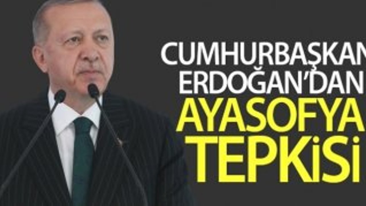 Ayasofya'nın ibadete açılması konusunda dünya ülkelerine tepki gösteren Erdoğan, 'Biz nasıl dünyanın diğer ülkelerinde kendi vatandaşlarına hizmet veren ibadethanelere karışmıyorsak, kimsenin bizim ibadethanelerimize karışmaya hakkı yoktur. Türkiye her dinden her inançtan vatandaşına ibadet imkanı sunan bir ülkedir. Halihazırda ülkemizde sayıları 435'i bulan kilise, sinagog ve havra ibadete açıktır. Hatta ülkemizde Balat'daki demir kilise örneğinde olduğu gibi restorasyonla ayağa kaldırılan yeni kiliselere dahi destek verdik. Ayrıca geçmişi günümüzden 11 bin yıl öncesine uzanan ve insanları ibadet için kurduğu ilk yerleşim olarak bilinen Göbeklitepe başta olmak üzere faklı dönemlere ve medeniyetlere ait binlerce tarihi ibadet mekanına sahibiz. Böyle bir ülkeyi ibadethaneler üzerinden eleştirmeye çalışmak, hakikatlere sırt dönmek demektir. Ülkemize Ayasofya konusunda yöneltilen ithamlar doğrudan egemenlik haklarımıza saldırı anlamını taşımaktadır. Dünyanın dört bir yanında camilerin ve diğer dinlere mensup insanların ibadetlerinin saldırıya uğradığı bir dönemden geçiyoruz. Milyonlarca insan sadece dini inançlarında dolayı hayatlarına kast edilmesi dahil her tülü baskına maruz kalıyor. Asıl bakılması gerek yer burasıdır. Biz ülkemizdeki hakim inanç grubu olan Müslümanların da diğer dinlere mensup olanların da hakkını hukukunu korumaya devam edeceğiz' şeklinde konuştu.