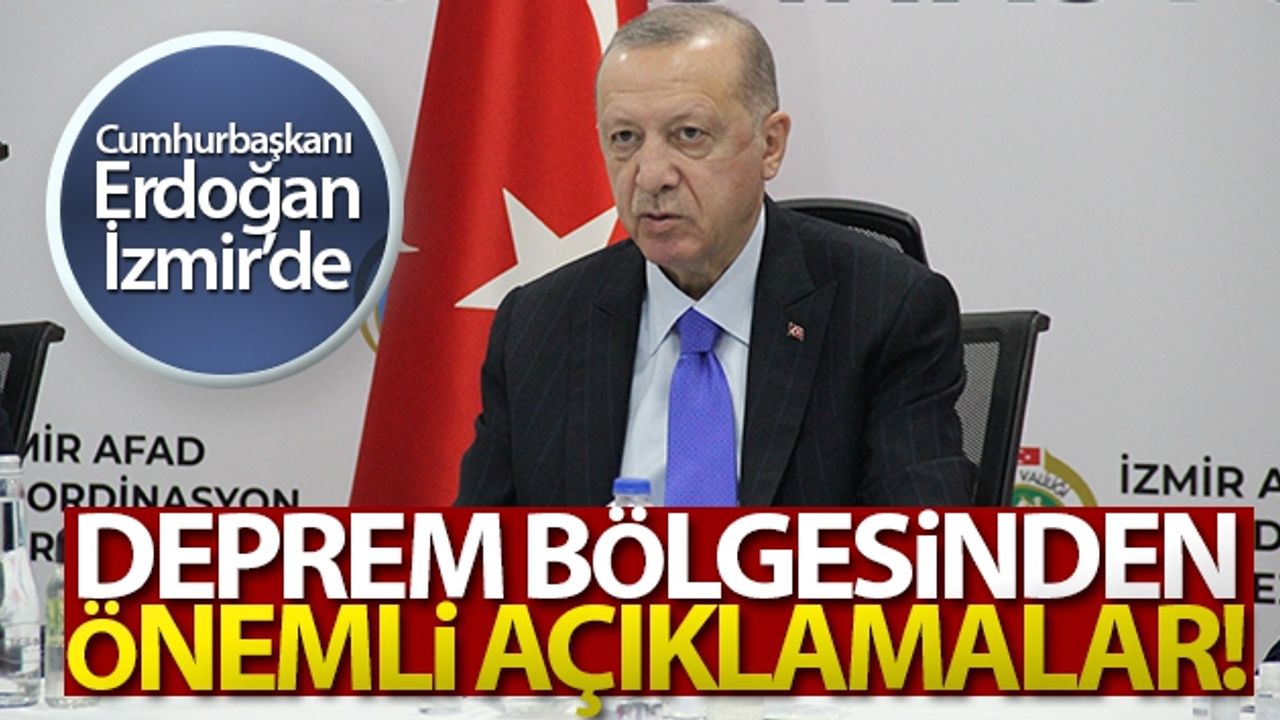 İzmir'in Seferihisar ilçesi açıklarında meydana gelen deprem sebebiyle Cumhurbaşkanı Recep Tayyip Erdoğan İzmir'e geldi. Cumhurbaşkanı Erdoğan, İzmir AFAD Koordinasyon Merkezi'nde yetkililerden deprem sonrası yürütülen çalışmalarla ilgili bilgi aldıktan sonra açıklamalarda bulundu. Cumhurbaşkanı Erdoğan, 'Bildiğiniz gibi dün İzmir Seferihisar ilçemizde 14.51 itibariyle merkez üssü Ege Denizi açıklarında 6.6 şiddetinde bir deprem yaşadık. Ve bu deprem neticesinde şuan itibariyle 37 vefatımız var. 885 yaralımız var. Bunlardan 667'si taburcu olmuş vaziyette. 218 vatandaşımızın tedavisi devam ediyor. 8 Yoğun bakım var. 3'ü ağır. Şuana kadar enkazdan kurtarılan vatandaşlarımızın sayısı 103. Bu süreci TBMM başkanımız olsun, Cumhurbaşkanı yardımcımız olsun, bakanlarımız bu süreci takip ediyor. Diyanet işleri, AFAD'ımız, Kızılay'ımız hep burada kurum olarak bulundular' dedi.