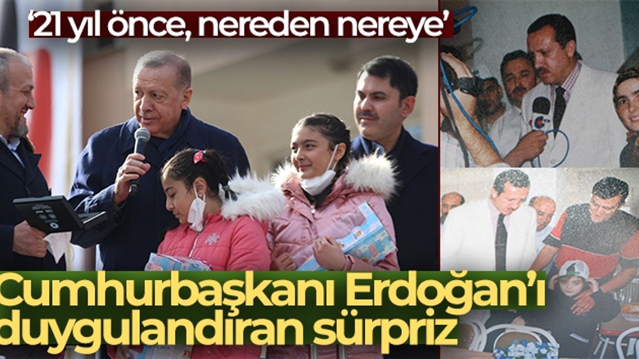 Cumhurbaşkanı Recep Tayyip Erdoğan, Giresun'un Dereli ilçesinde düzenlenen Dereli-Doğankent Afet Konutları, İşyerleri ve Altyapı Yatırımları Açılış Töreni'nde 21 yıl önce Dereli'ye yaptığı ziyarette çekilen fotoğrafların kendisine gösterilmesi ile duygulandı.