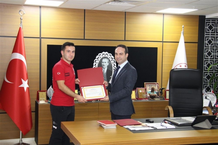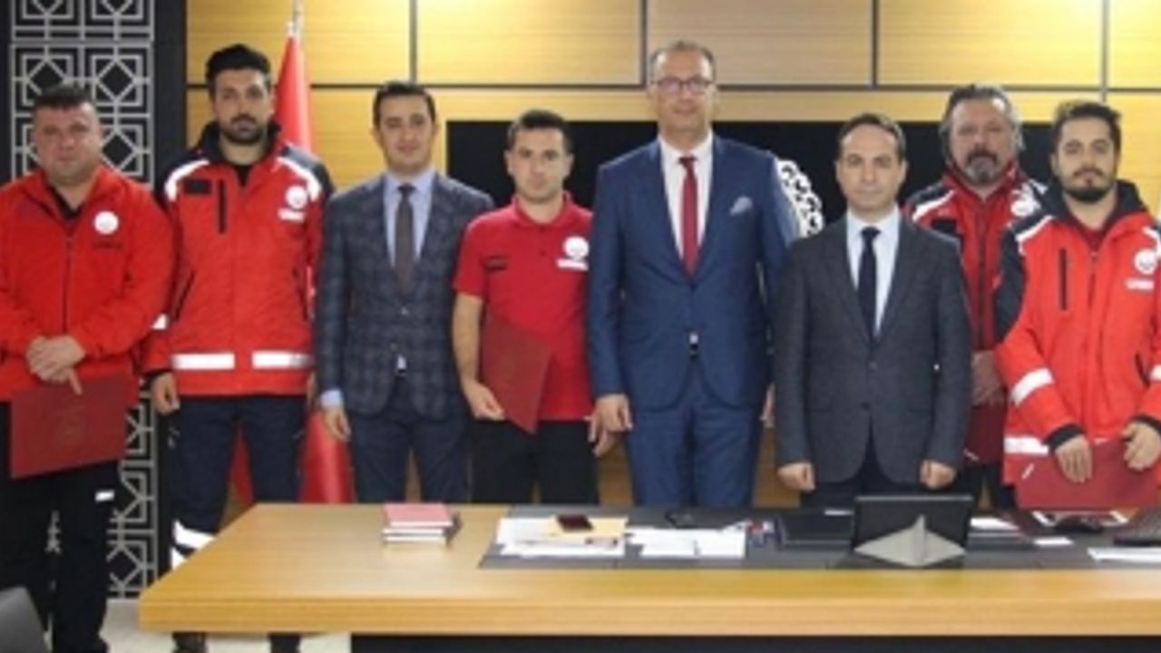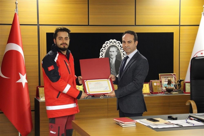 Elazığ'ın Sivrice Bölgesi'nde yaşanan deprem sonrası Aydın'dan deprem bölgesinde giderek çalışma gerçekleştiren UMKE Aydın personeline teşekkür belgesi verildi.