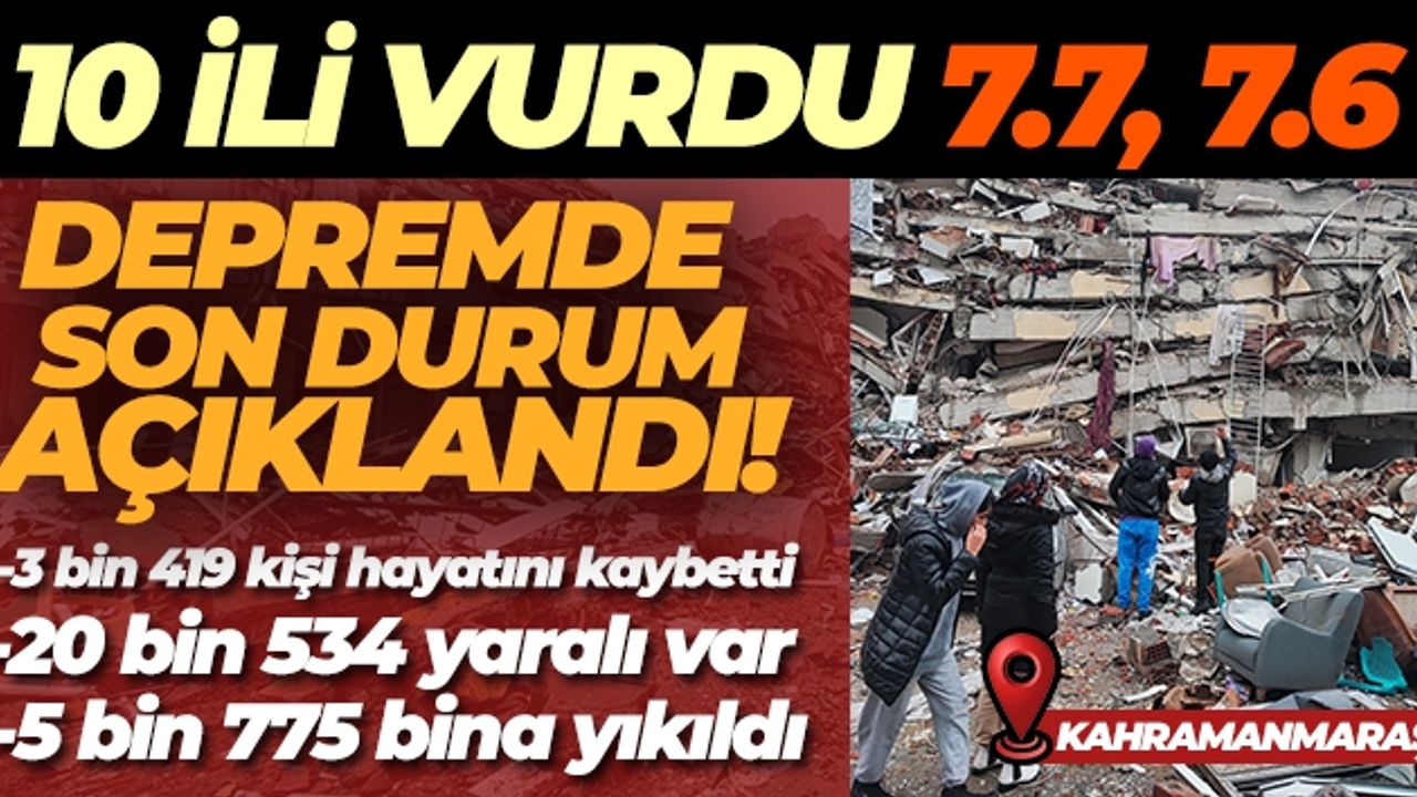 Kahramanmaraş 530 kayıp, yaralı 2 bin 900. Hatay 872 kayıp ve 2 bin 766 yaralı. Osmaniye 293 kayıp, bin 312 yaralı. Adıyaman 720 kayıp, 400 yaralı. Diyarbakır 92 kayıp, 770 yaralı. Şanlıurfa 95 kayıp, bin 791 yaralı. Gaziantep 481 kaybımız, 3 bin 890 yaralı. Adana 146 kayıp, 2 bin 611 yaralı. Malatya 166 kayıp, 3 bin 298 yaralı. Elazığ'da 2 kayıp ve 376 yaralımız söz konusu.