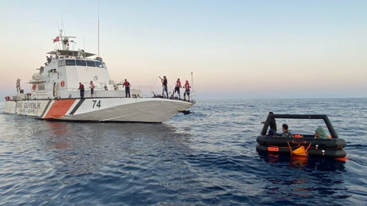 Aydın'ın Didim ilçesi açıklarında Yunanistan unsurlarınca Türk Karasularına geri itilen can salı içerisindeki 5 düzensiz göçmen kurtarıldı.
