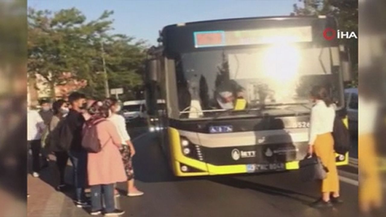Otobüsün önünde şoföre tepki gösteren kadın 'Biz insan değil miyiz? Her sabah aynı sorunu yaşıyoruz. İşimize geç kalıyoruz' diye bağırdı. Bu sırada durakta bekleyen vatandaşlar kadına tepki göstererek otobüsün önünden çekilmesini istediler. Buna da sinirlenen kadın 'Biz bir şey yapmasak bu durum çözülmez' dedi. Vatandaşlar kadını ikna etmeye çalışsa da öfkeli kadın otobüsün gitmesine uzun bir süre izin vermedi.