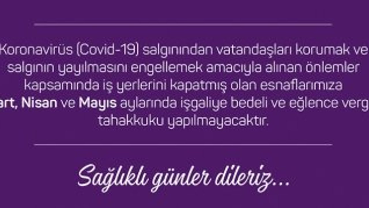 Efeler Belediyesi, korona virüs tedbirleri nedeniyle iş yerlerini kapatmak zorunda kalan ilçe esnafından 3 ay işgaliye bedeli ve eğlence vergisi almayacağını duyurdu.